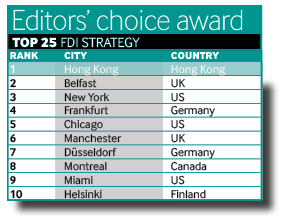 Hong Kong has topped the ranking for FDI Strategy, impressing judges with its commitment to accelerating and empowering start-up companies.